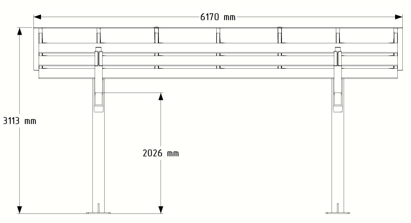 - Всего две опоры обеспечивают максимум простора для маневров и заезда, не загромождая территорию.
