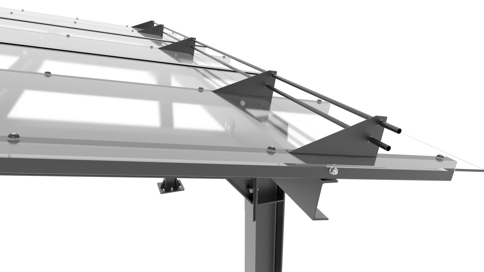 - Кровля из монолитного поликарбоната 10 мм не крадёт солнечный свет, создавая под навесом эффект открытого неба.