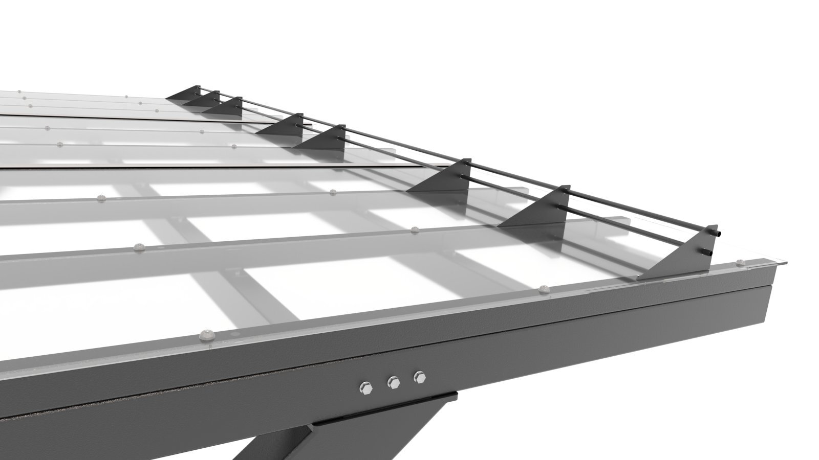 - Кровля из монолитного поликарбоната 10 мм не крадёт солнечный свет, создавая под навесом эффект открытого неба.